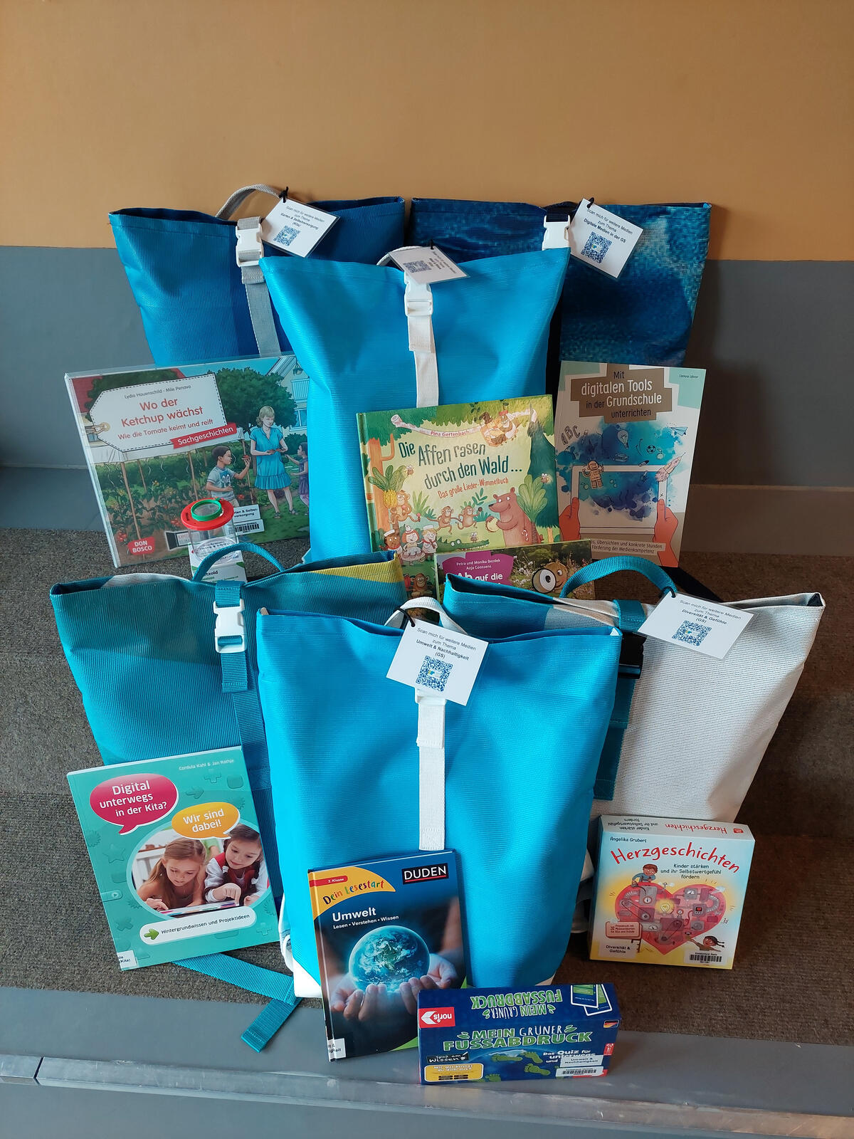Das Medienzentrum hat sich auf die Ausschreibung des dbv-Landesverbandes Niedersachsen zur Förderung von Nachhaltigkeit in Bibliotheken beworben und ist mit 1.500 € bedacht worden. Mit dieser Summe konnten lokal, sozial und nachhaltig produzierte Rucksäcke für die Zielgruppen Kitas bzw. Grundschulen beschafft werden. Die Rucksäcke sind mit Medien aus den Bereichen Umwelt & Nachhaltigkeit, Garten & Selbstversorgung, Wald & Wiese, Diversität & Gefühle sowie Umgang mit digitalen Medien bestückt und stehen ab sofort zur Ausleihe in den Kreisbüchereien bereit. Neben Bilder- und Vorlesebüchern sind auch Spiele, Kamishibai-Bildkarten sowie pädagogische Materialien enthalten.